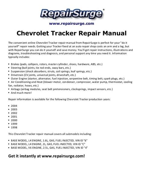 At present you are looking for an 1998 Chevrolet Tracker Service Repair Manual Software example that will we provide here within some type of document formats such as PDF, Doc, Energy Point, and also images that will will make it easier for you to create an 1998 Chevrolet Tracker Service Repair Manual Software yourself. For a better look, you may open some examples below. All of the illustrations about 1998 Chevrolet Tracker Service Repair Manual Software with this site, we get from many sources so you could create a better record of your own.